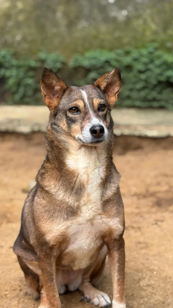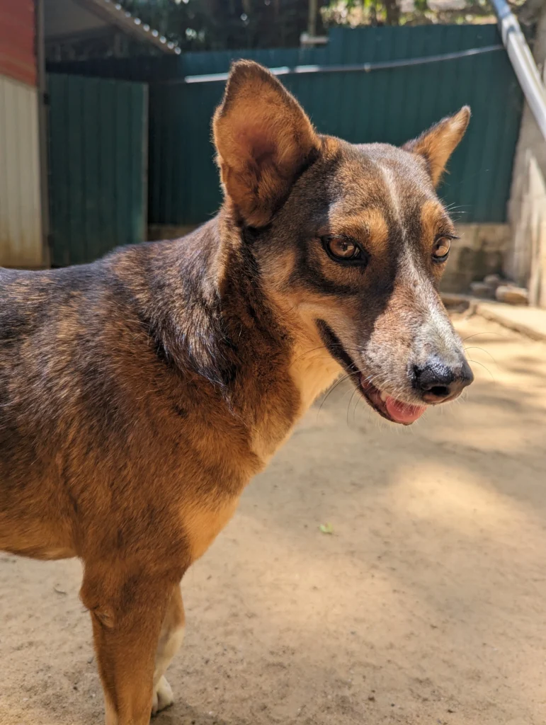 We found Faith on a busy main road, dangerously thin, with barely any fur left and her two tiny puppies clinging to her side. Life had been tough on her — but she never gave up.