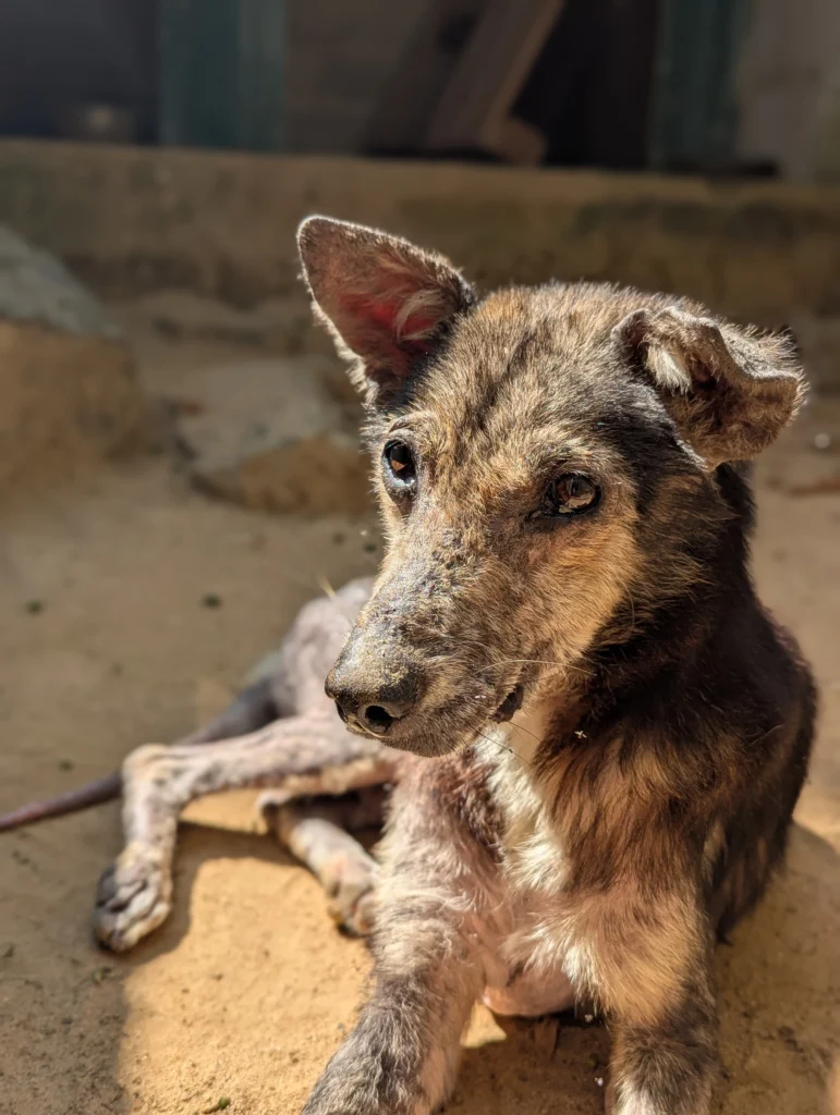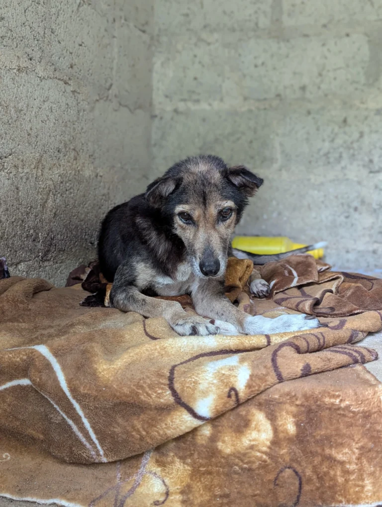 Rescued in January 2025, Dobby arrived with a severely broken front leg. Although surgery was attempted, his age makes another operation too risky — even amputation isn’t an option anymore.