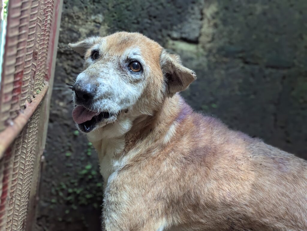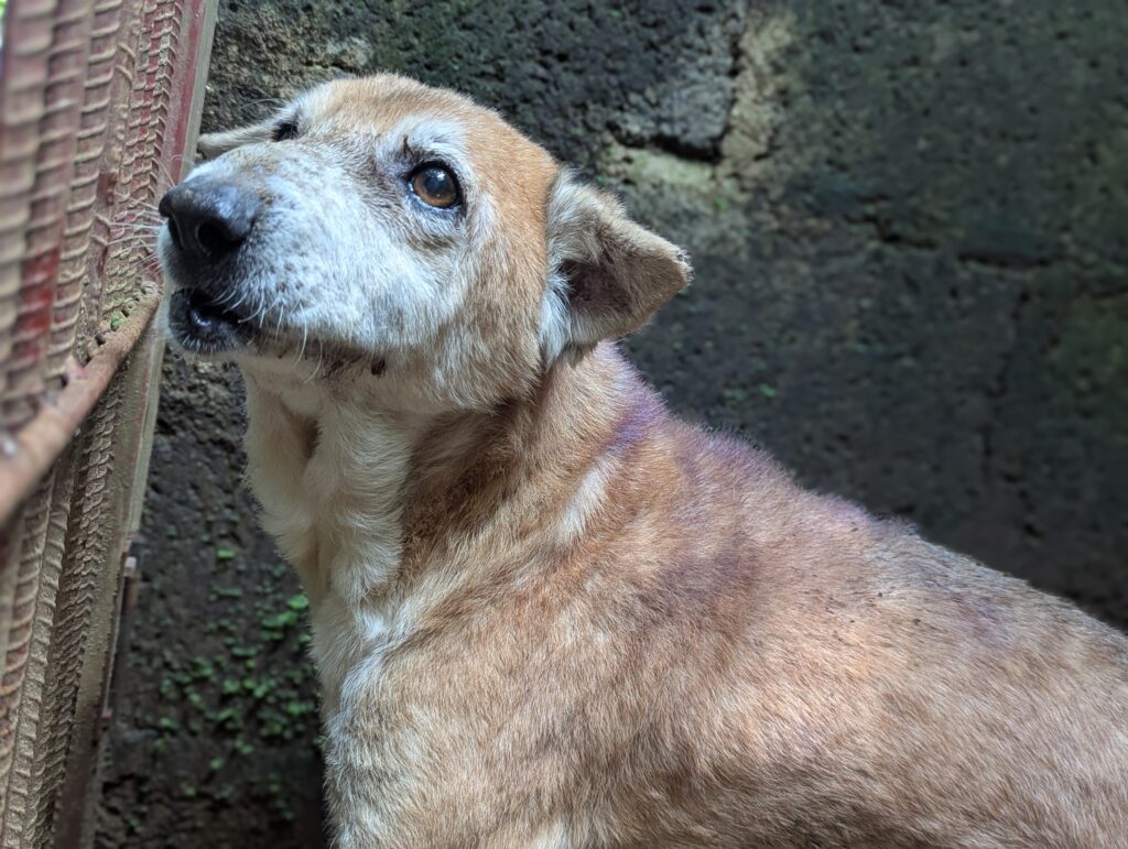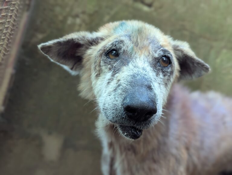 When Roberto was rescued beginning 2025, he was almost completely hairless — a fragile senior longing for warmth and safety after years on the streets.